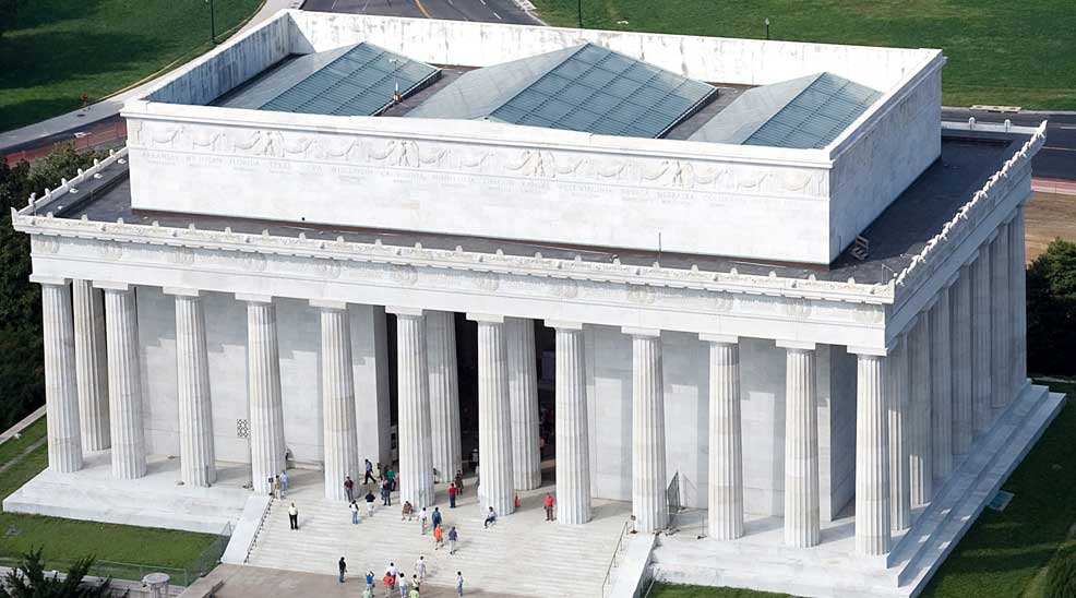 In real life, visitors can climb the steps to the massive seated statue of Lincoln and enjoy sweeping views of the National Mall and Reflecting Pool.