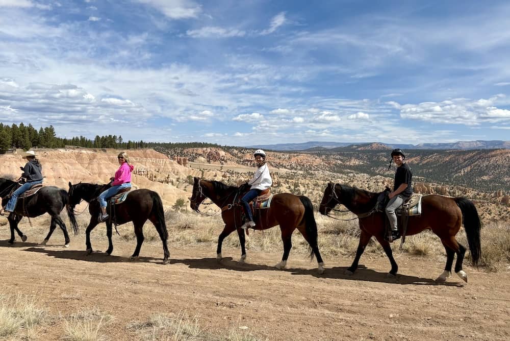 We booked a horse riding trip, which we thought was along the rim, ( hence the reason we didn’t do the hike ) but it turned out to be outside the National Park. It was a 90 minute activity but only 10 minutes were close to the canyon, the rest was through a forest. I suggest booking a horseback ride in Bryce canyon, for the ultimate bucket list experience – see details here.