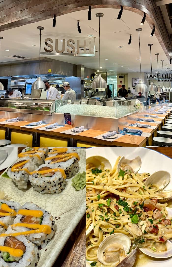 We had a delicious meal here. The menu has everything from clam chowder and lobster rolls to sushi and spaghetti with clams – my personal favourite!