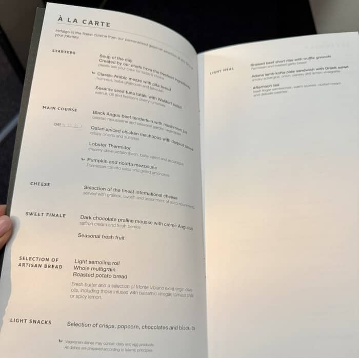 Dining on Qatar Airways Business Class