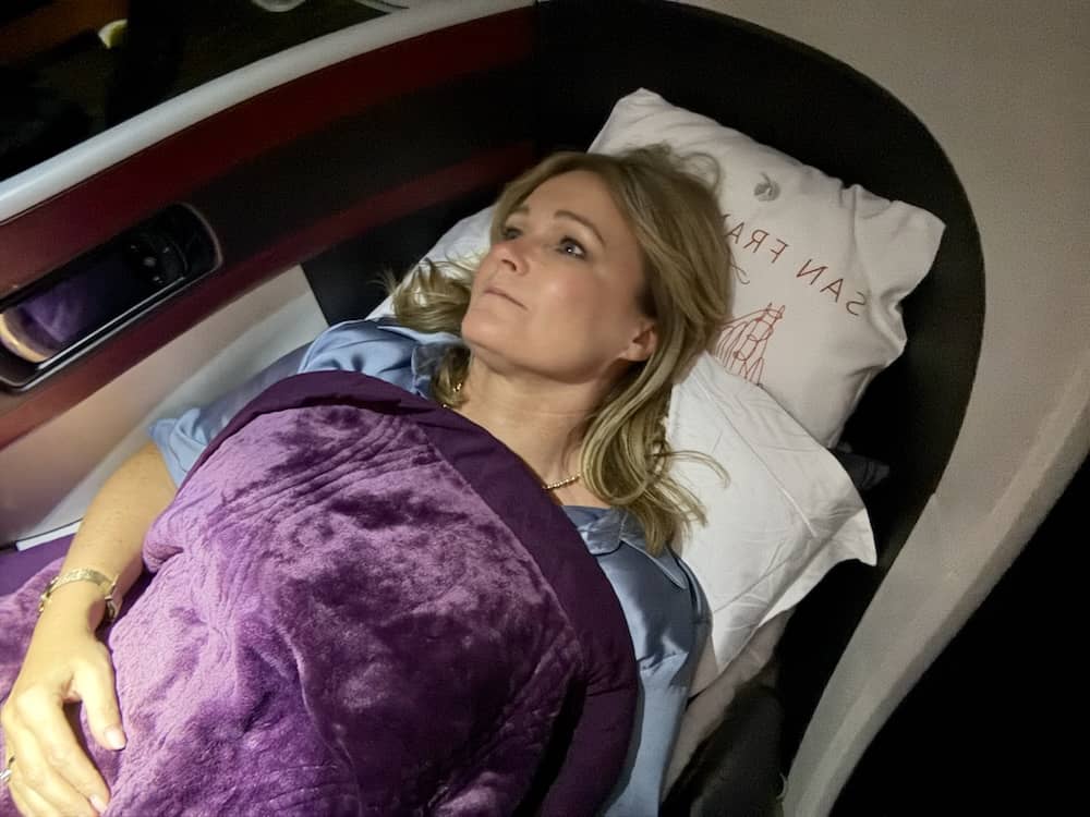 On my recent flight I slept almost the entire leg from Doha to Dublin. The turn-down service with sheets and pillows is a superb offering. You can see the turndown service on my Instagram highlights.