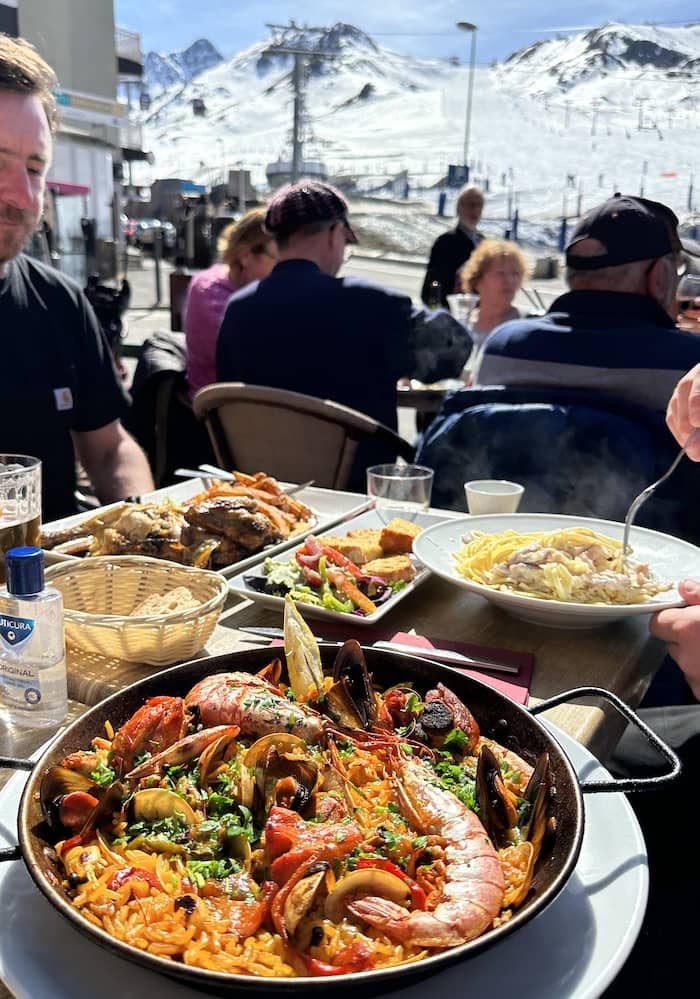 Andorra’s location between France and Spain is perfectly placed to offer the best of both cuisines. Tapas bars and gourmet restaurants are found in most resorts. I had a delicious Paella at Terrassee Lucien overlooking the slopes in Pas de la Casa.