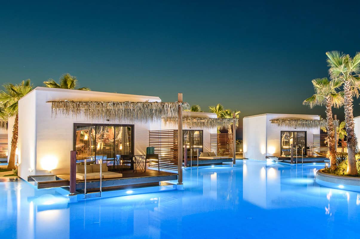 This exclusive adults only five star hotel in Kos is nestled in the peaceful village of Marmari, on the island’s south-eastern coast. The hotel features several swimming pools and a private beach, providing an ideal setting for relaxation. Your room will be a swim up style, allowing you to step directly into the water without leaving the comfort of your room.