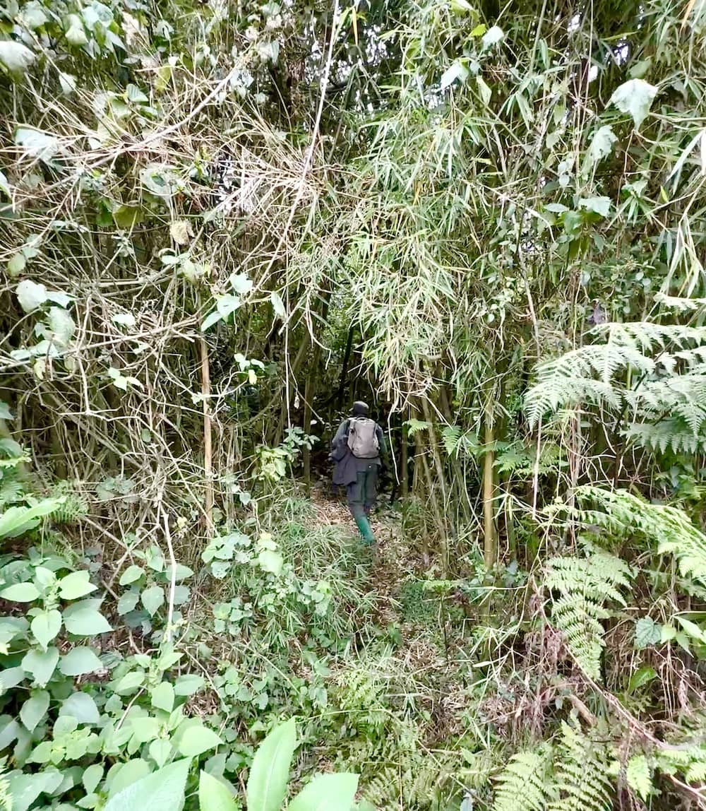 The trackers got excited when they found fresh gorilla dung or freshly made pathways through the jungle – it was hard to believe we were tracking mountain gorillas in this way!