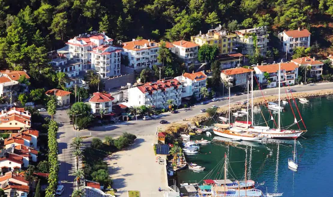 Lined with cafés, restaurants, and tavernas, the bay offers fresh seafood and stunning sunsets, while a palm tree lined promenade and nearby olive groves give it a peaceful, natural feel, all just a short drive from Bodrum’s shops, nightlife, and historic sites.