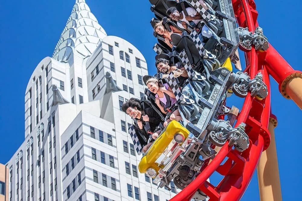 The New York Hotel’s star attraction was the first roller coaster in the world to have a 180-degree “heartline” twist. You ride at speeds of up to 67 mph and dive to a 203 foot drop. Riders must be 54” without footwear and pre booking is recommended.