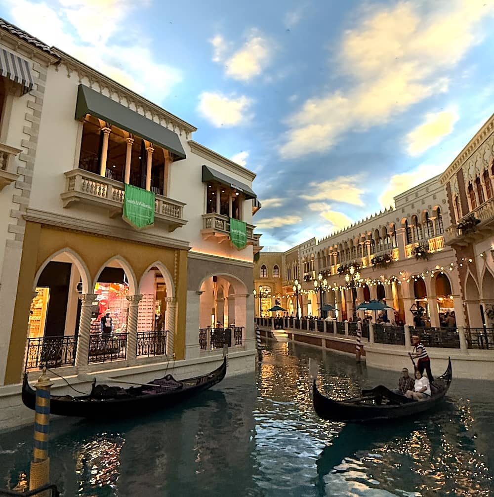 You can enjoy a 15 minute relaxing gondola ride indoors along the Grand Canal or outdoors along the resort’s lagoon. The cost is $39 per person in a shared gondola for up to four people, or you can book a private gondola, but you will pay $156 for the privilege.