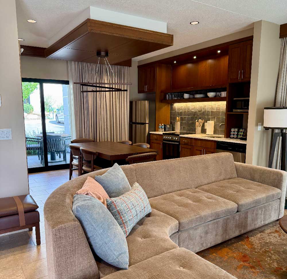 We stayed in the Hoodoo Moab by Hilton and it was the best accommodation of the trip. The hotel has regular rooms and suites, but also large 2-bedroom casitas ( small houses ) where we stayed. They offered the benefits of self-catering with hotel facilities on site including a pool, bar and restaurant. We loved the space and comfort here and enjoyed pool days, and even ordered Uber Eats one evening for a night in.