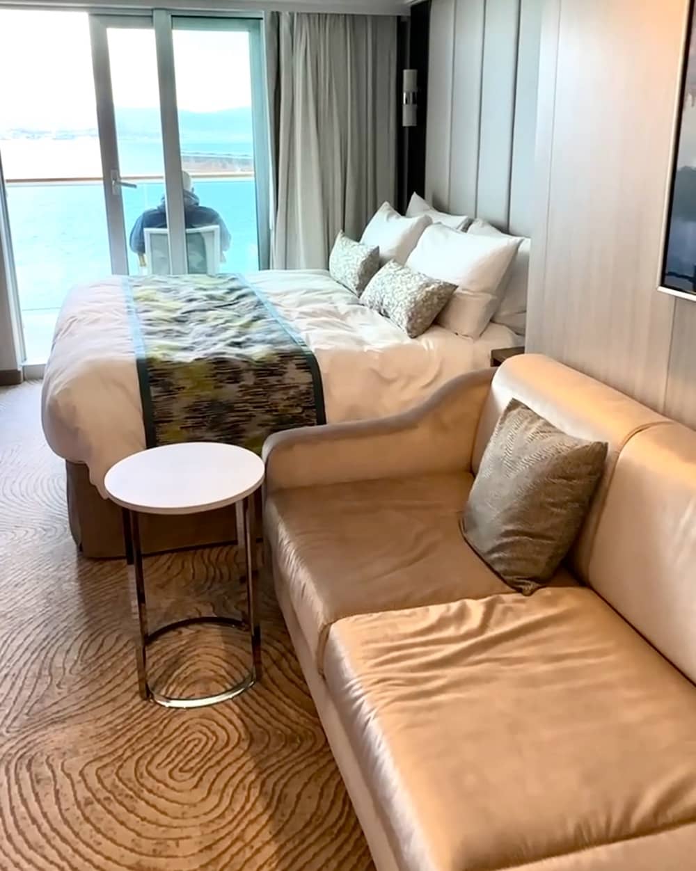 I loved how the balcony wall slides back so if you do have interconnecting balcony cabins, you can enjoy a shared space.