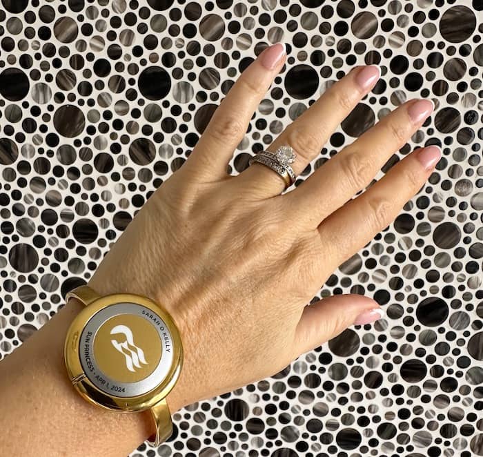 The Medallion also syncs to your cabin door, which unlocks automatically when you approach, so there is no need to fumble for key cards. You can wear it around your neck in a lanyard, around your wrist like I have pictured above, or put it in your bag or pocket.