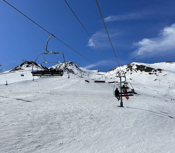 Although the Alps are the highest mountains in Europe, the average height of the Andorran mountain range is still very high, at 1996 metres, and because Andorra faces the Mediterranean, it is one of the snow destinations with the most days of sunshine. We were able to ski in tee-shirts in March, it was bliss!